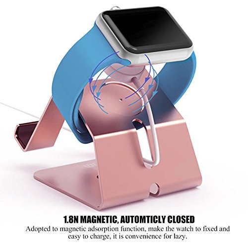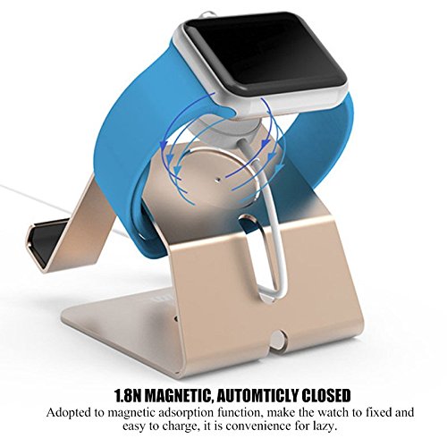 -. Feature : Compatible with all versions of the Apple Watch 38mm & 42mm, ipad, iPhone SE / 6s / 6 / 6s Plus / 6 Plus / Galaxy S6/ S6 Edge / S7 / S7 Edge / LG G5 and all smart phone. / Material: Made of pure aluminium, stable and durable. Bundle with non-slip and scratch-resistant silicon pad on the bottom of the stand, prevent any slipping, sliding or scratch. / Special Design: 2 in 1 rectangular dock design keeps your Apple Watch, iPhone or iPad charged in one convenient location. Perfect for nightstands, desks, kitchen counters or any stable flat surface. / Safe and Stable Dock Charger: With a magnet on the back of the stand, easy and convenient to adsorb your Apple Watch charger, efficient and space-saving. / Multi- Function: A great place to keep your iWatch, iPhone, iPad clean and safe during charging.
