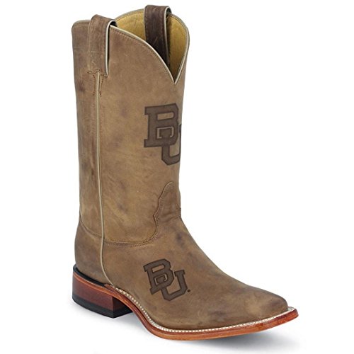 Studio : Nocona Boots Publisher : Nocona Boots Binding : Apparel Product Description Boost your school pride (and your cool factor) with American made Nocona College Boots. Choose authentic, premium quality western boots made by legendary boot manufacturer, Nocona Boots. These Men's Nocona Boots are officially licensed and designed with the Baylor Bears logo to show your alumni support to the world. The Nocona Baylor University cowboy boot features a tan Ponteggio leather foot under an 11" matching leather shaft. Official Baylor University lasered school logo accents. Natural leather piping. Cushion insole offers comfort from the first step. Double stitched welt. Easy-wearing low 1 1/2" cowboy boot heel with rubber grip surface. Square toe. Please note, Ponteggio leather may arrive darker than shown. To achieve desired appearance quickly, work the leather in hand. 0
