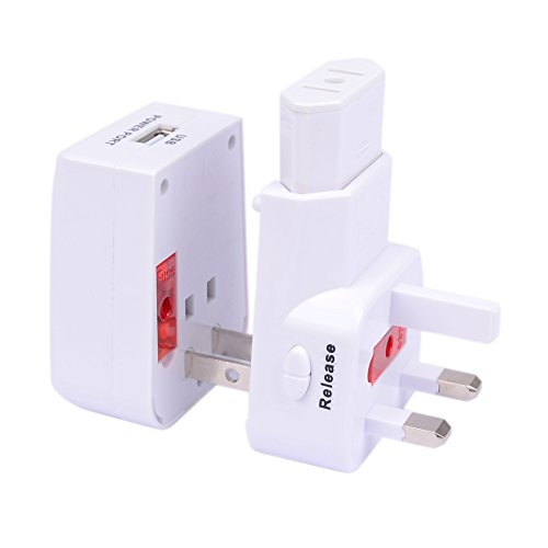 Universal All In One Adapter International Adaptateur Travel AC USB Charger UK EU HK USA CA (White)