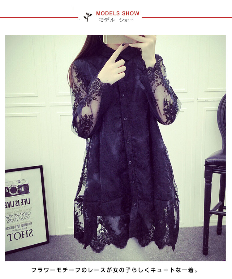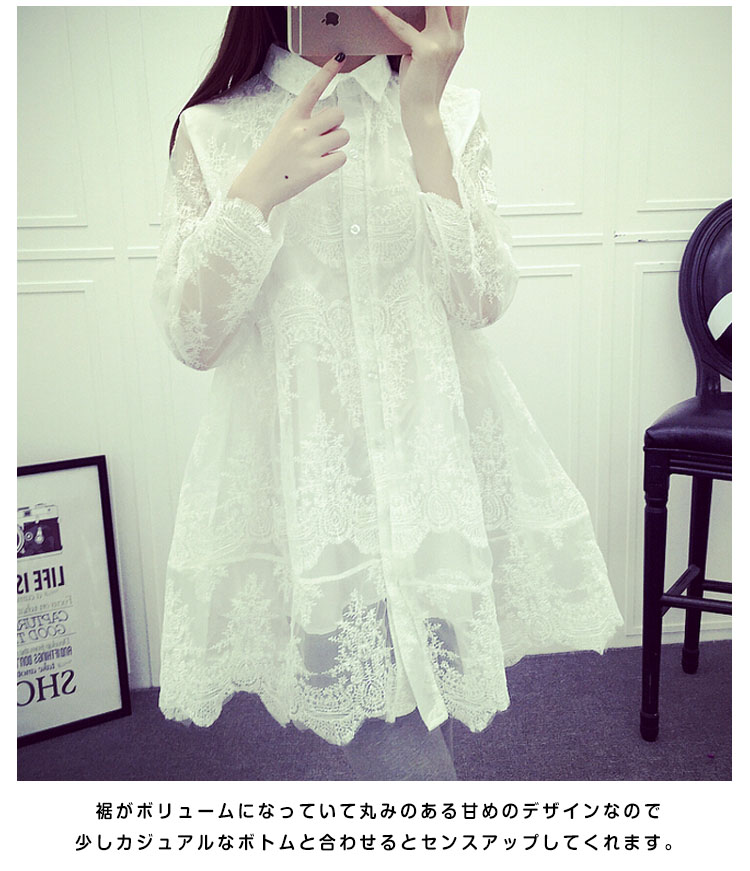 | 春夏着たい素材のレースを使用したシャツワンピースが新登場です。フラワーモチーフのレースが女の子らしくキュートな一着。裏地付なのでそのまま一枚で可愛く着ていただけます。裾がボリュームになっていて丸みのある甘めのデザインなので少しカジュアルなボトムと合わせるとセンスアップしてくれます。 | |