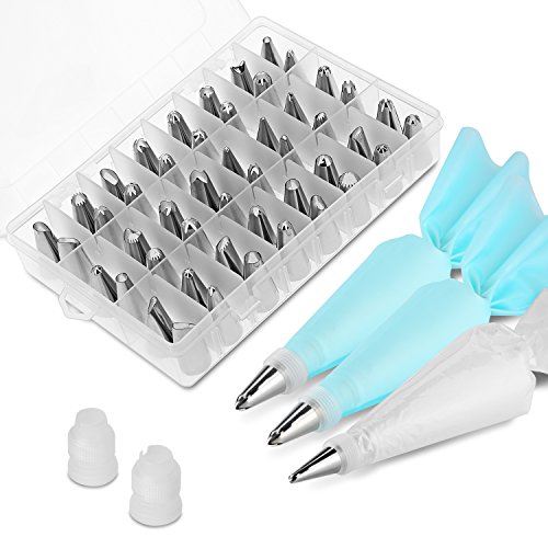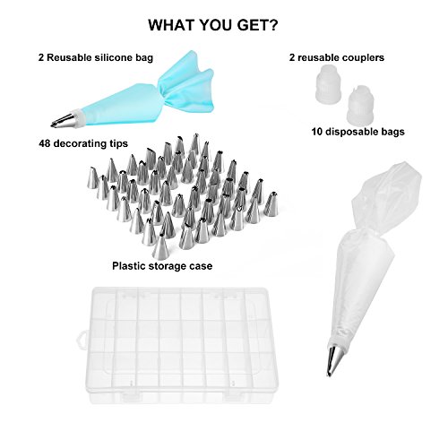 62 in 1 Cake Decorating Supplies, Stainless Steel DIY Icing Tip Tools, Baking Supplies Set, 2 Reusable Coupler & Storage Case, 12 Cake Decorating Pastry Bags - Best Kitchen Gift