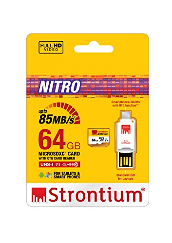 Memories deteriorate. Strontium doesn't. If you are looking for a superior storage solution for smartphones and tablets, look no further than the Strontium NITRO range of microSD Cards. These memory cards have enough storage which will address your smartphone storage requirement. Data Storage and Transfer between OTG-compatible devices. Strontium NITRO range of UHS-1 microSDHC/microSDXC memory cards offer impressive android storage of music, full high-definition videos, high resolution photos and games in a tiny body with ultra-high performance. These NITRO Strontium microSD cards are widely available from 16GB to 128GB capacities of memory cards. On The Go (OTG) card reader included. If you are looking to buy microSD card that can also be used as an OTG drive, then Strontium's android memory card is the best microsd that you can come across. Strontium's Mobile Kit combines a microSD card with an OTG card reader to create convenience of transferring files between OTG-compatible devices, through the microSD cards, on the go. Ultra High Speed Performance. Strontium's UHS-1 microSDHC/microSDXC memory cards maximizes the UHS-I memory technology to deliver a read transfer speed of up to 85MB/s (566X). Hence, these strontium microSD cards makes it simple to rapidly acquires, plays back, and transfers media data, including extended durations of 1080p full-HD and 3D videos on your latest Android devices.Feature