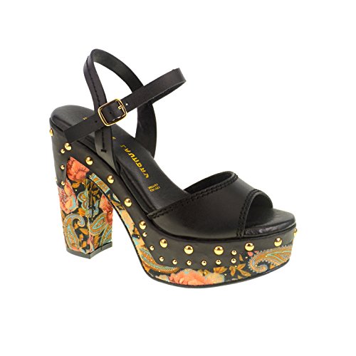 Product DescriptionPlatform high heel sandal with studs and embellished bottom0