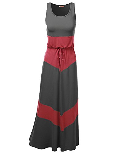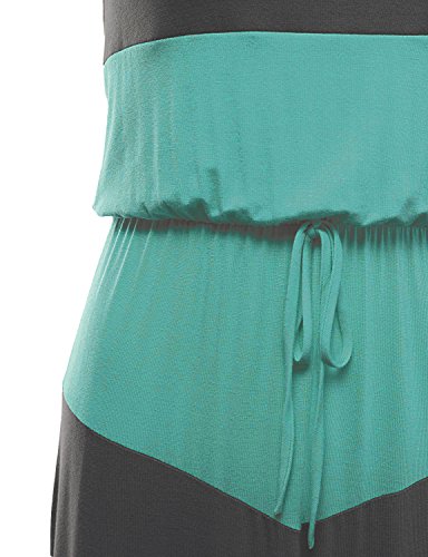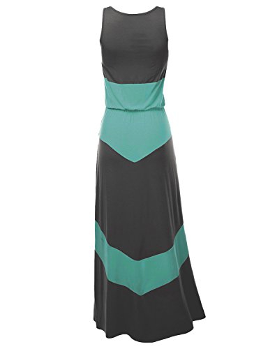 Color Block Striped Good Strech Waist String Maxi Dresses Charcoal Mint Size XL