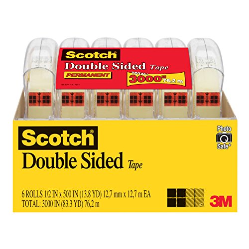 Scotch Double Sided Tape, 1/2 x 500 Inches, 6 Dispensers/Pack (6137H-2PC-MP)