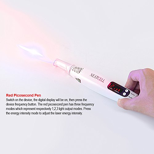 The Differences between RED and BLUE are that: 1. The RED ONE's main function are washing eyebrow, mole removal and tattoo removing , and its Power is bigger than the blue one. The Blue ONE's main function are washing eyebrow, mole removal ,tattoo removing and Freckle removing , and its operation is more delicate the the red one. 2. The Blue has 9 level, using for 1. Tattoo removal 2. Mole removal 3. Dark Spot/ Freckle/ Pigment removal 4. Eyebrow Makeup Cleaning 5. Acne Treatment. And the RED only has 3 levels. If you use it for tattoo removing and washing eyebrow , we Suggest you choose the Red one . Or the blue one is better for you . Please choose the right one for yourselves !!! Note: 1. Before use the picosecond pen, the skin should be coated with Anesthetic. 2. After usage, it should be coated with repair Plaster to Prevent bacterial infection. 3. Please start from the lowest level, then slowly adjust to the suitable level.