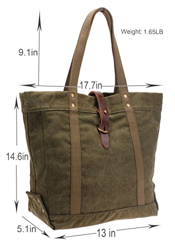 -. Feature : Lifetime Warranty: A Lifetime Warranty, Satisfying Shopping Experience. Feel Free Contact Us. / Quality Material: Heavy Duty Canvas, Thick Genuine Leather(0.2 in) and Durable Hardware Rivets. / Large Capacity: Dimensions with 17.7in(L) x 5.1in (W)x 14.6 in (H). Roomy enough for textbook, water bottle, ipad and laptop. / Muiltiple Function: Perfect as a Travel Tote Bag, Women Shopper Bag, Mom Diaper Bag and Canvas Beach Bag. / Wonderful Gift: A perfect present for families on the following Thanks Giving Day or Halloween festival.