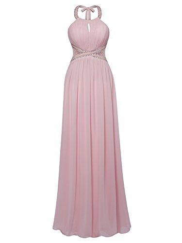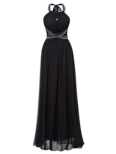 -. Title : KiniKiss レディース ホルターネック スパンコール Aライン イブニングドレス ベアバック バックレス マキシ丈 シフォン ワンピース 演奏会 結婚式ドレス