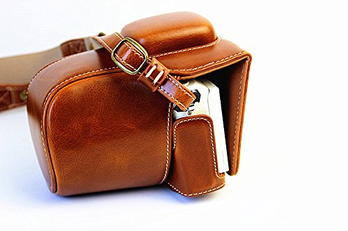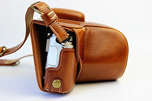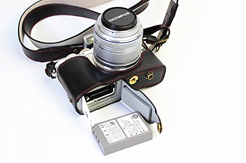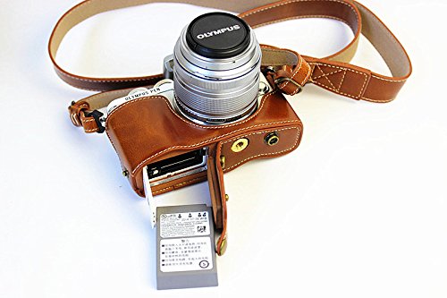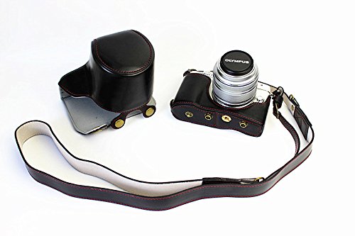 SundayZaZa Unten offnende Version Schutzmassnahmen PU-Leder Kamera Tasche mit Stativ Design Kompatibel fur Olympus PEN Lite E-PL8 EPL8 mit Schulter-Nackenriemen Gurtel