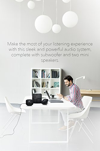 -. Feature : The Compact Stereo Speaker System from Sharper Image is the perfect solution to amplify big sound in small spaces. / The 2.1 Channel stereo sound system is comP.R.Ised of two speakers and a subwoofer, three compact units made to fit any room. / Its sleek aesthetic design makes this sound system ideal for desks, home offices, bedrooms, and more. / Connect your phone or tablet seamlessly with Bluetooth, or use aux-in cables (included) to wire the subwoofer to a TV or a computer / Bass and volume control knobs located on subwoofer. Package includes: Left and Right Speakers, Subwoofer, auxiliary cable, AC charging cord, user manual.