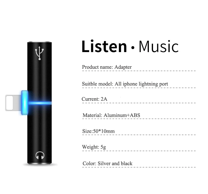 Product name:8 Pin to 3.5 adapter with apple Audio Charger Adapter