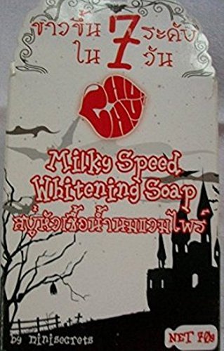-. Binding : Misc. -. Brand : dadyshop -. Feature : Milky Speed Vampire Super Whitening Soap. White up to 7 Levels in 7 Days. / With natural extract concentrated to accelerate skin renewal Cell to come and pushed deeply into the body / Help reduce dark spots and acne pimples on the body can reveal / Skin color is not white, bright white and tasteless, but Matte / Size : 70g.Quantity : 3 Bar.(70x3 = 210g) Product Of Thailand -. Label : Thailand -. Manufacturer : Thailand -. Model : P-000231 -. PackageQuantity : 3 -. ProductGroup : Single Detail Page Misc -. ProductTypeName : BEAUTY -. Publisher : Thailand -. Studio : Thailand -. Title : 3x70g Milky Speed Vampire Super Whitening Soap. White up to 7 Levels in 7 Days.