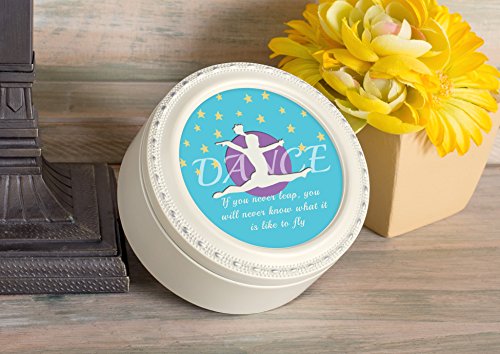 Dance if You Never Leap Stars Glossy Ivory Round Jewelry Music Box Plays Tune Wonderful World