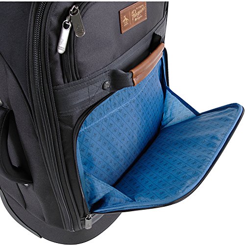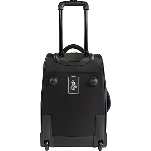 Studio : Original Penguin Luggage Publisher : Original Penguin Luggage Binding : Apparel Product Description You want to get away for a quick trip and you want to keep it casual. The 21" Penguin rolling duffel bag will get you there. You will arrive relaxed with the help of the extendable trolley handle that locks in 3 different positions and 2 thick padded carrying handles located on the top and side. With a total of 7 zippered pockets, you'll have enough room for clothes and accessories to even extend your trip a couple of days. A solid structure and durable polyester material helps to keep this rolling duffel upright, even when Empty. Carry-on size. 0
