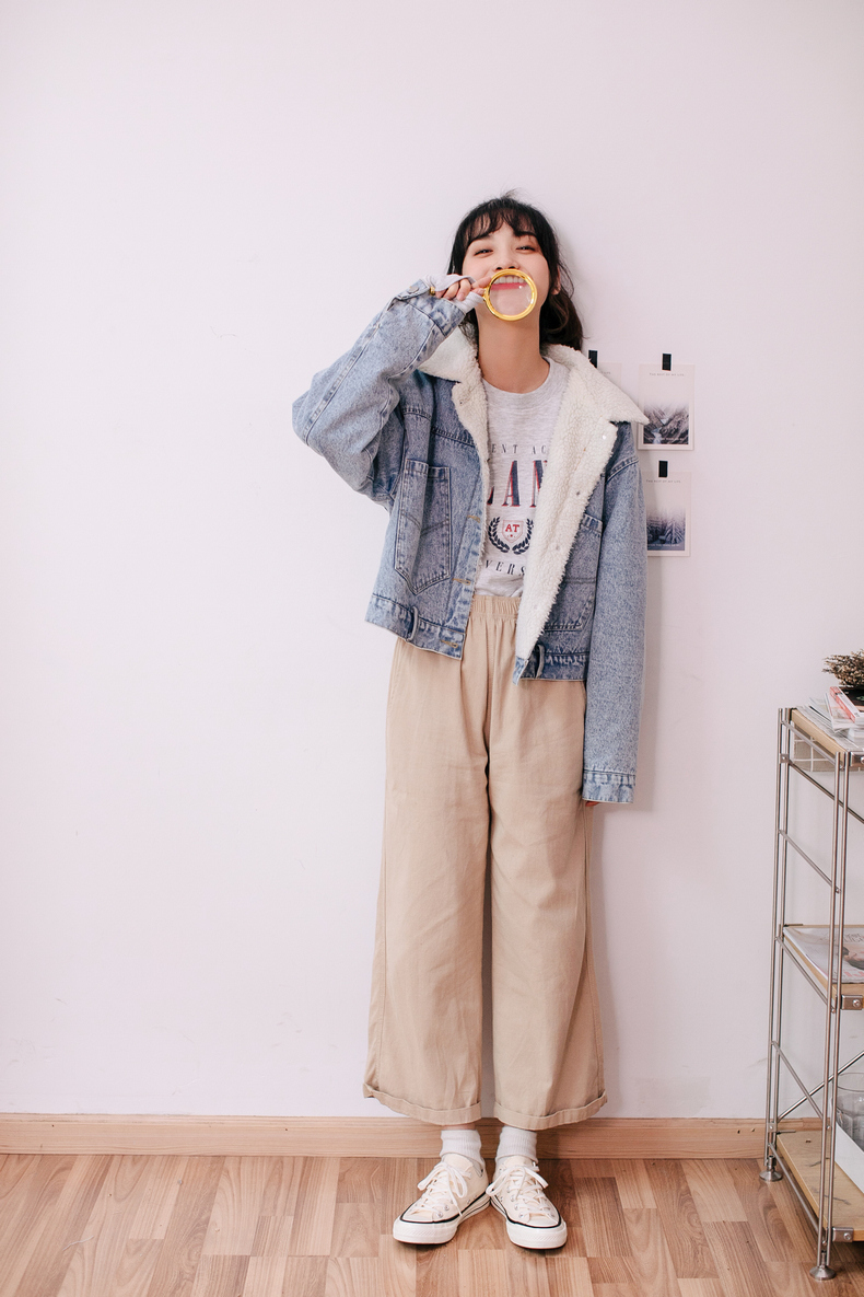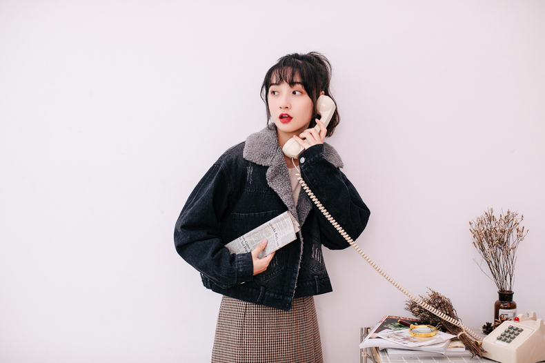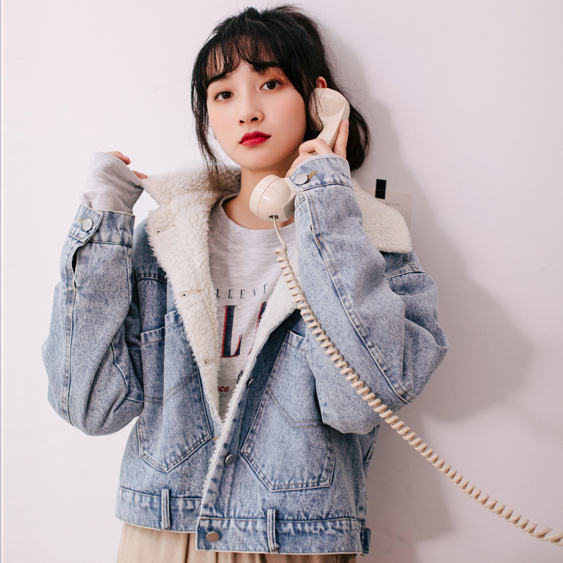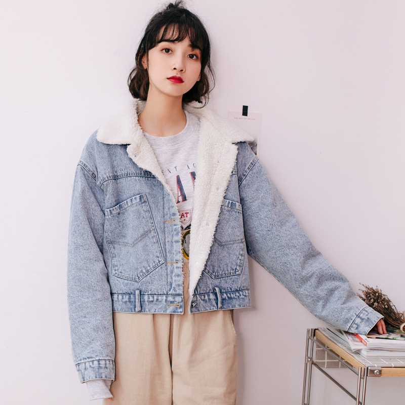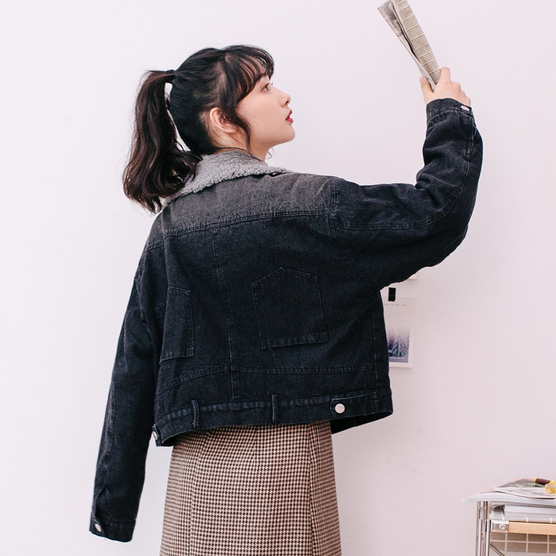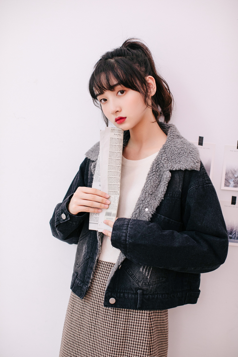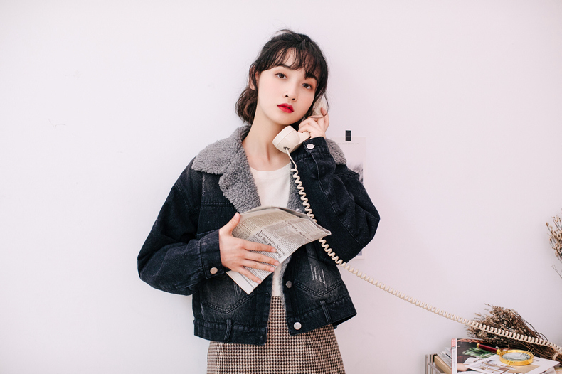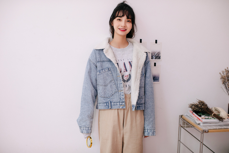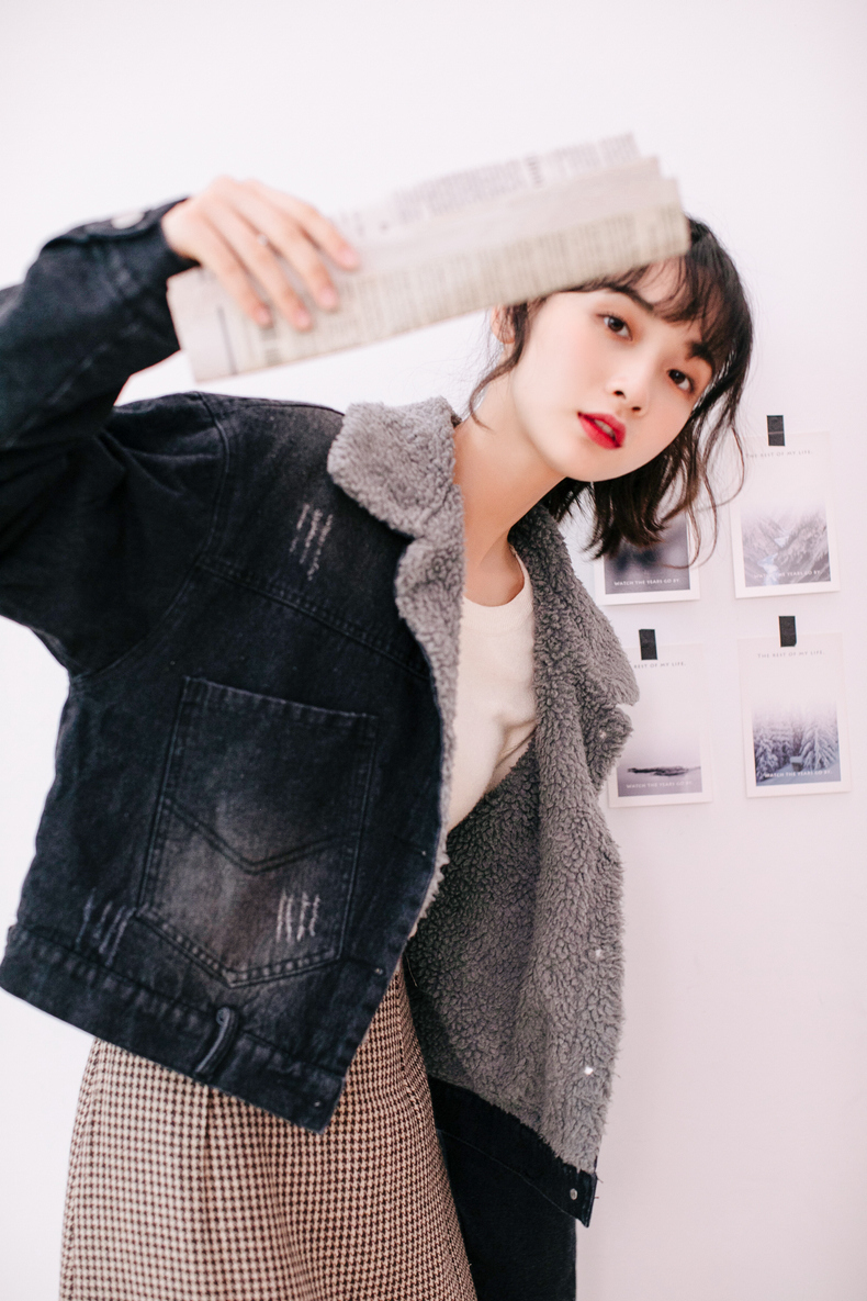 もこもことしたフェイクボアを使用した、襟部分の切り替えデザインがポイントになったデニムジャケット。