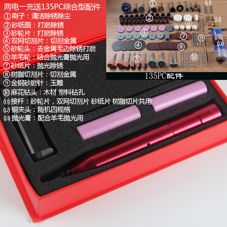 Package five: 3.6V2 lithium electric mill +135 member Packed 3.6V2 lithium electric grinding +135 member Packed