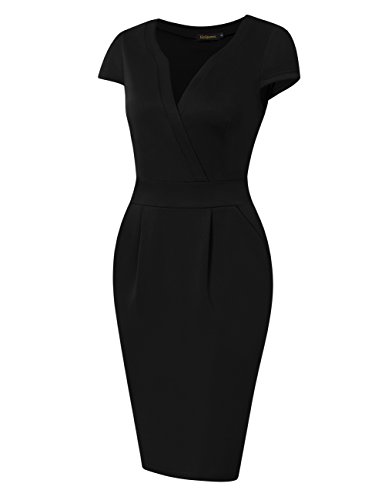 HiQueen Strechy V-neck bodycon Business Wear to Work Dresses for Women