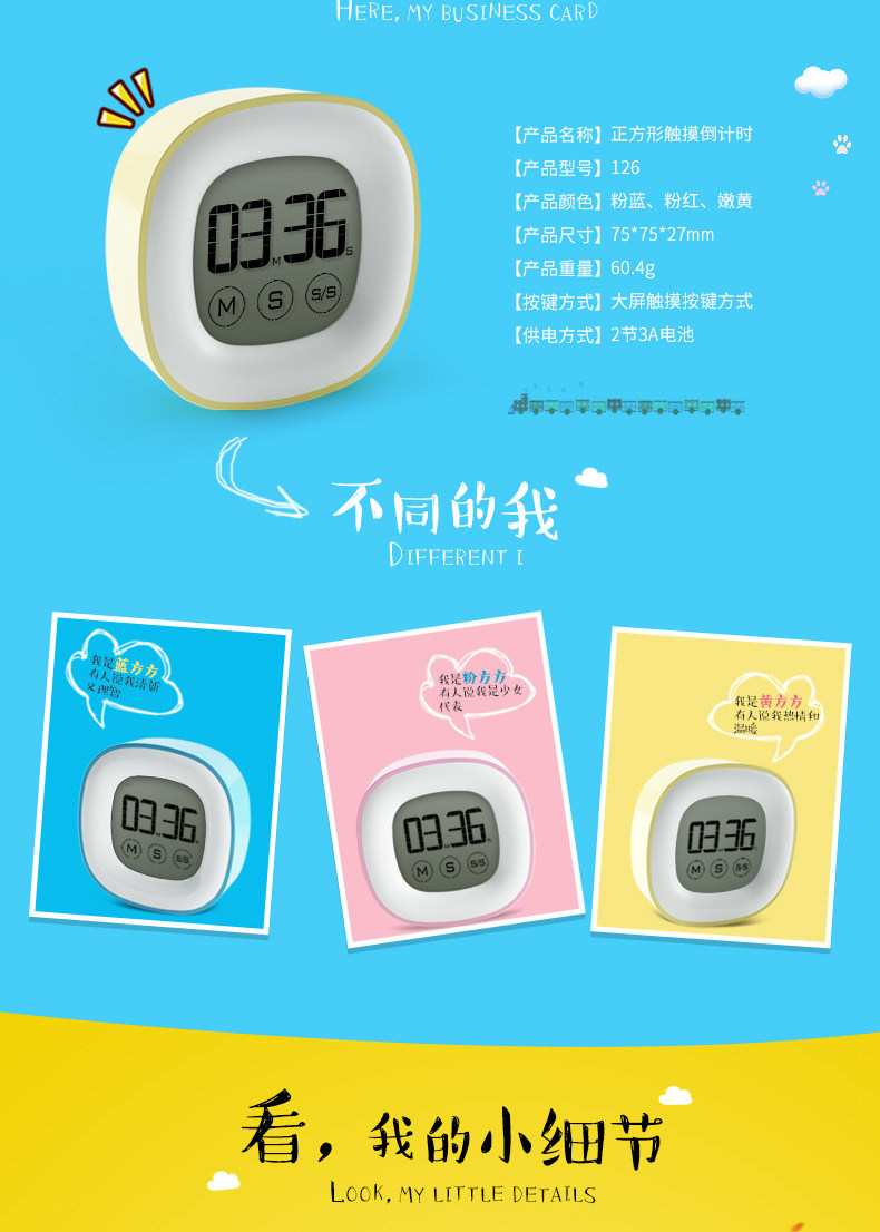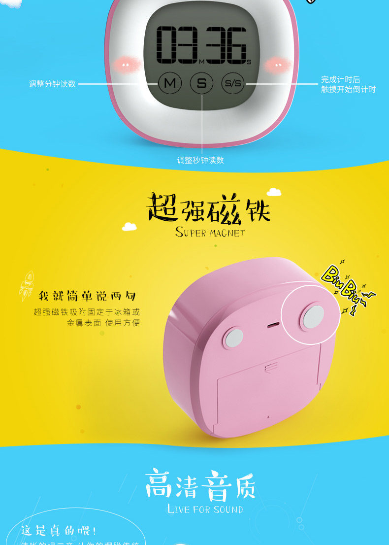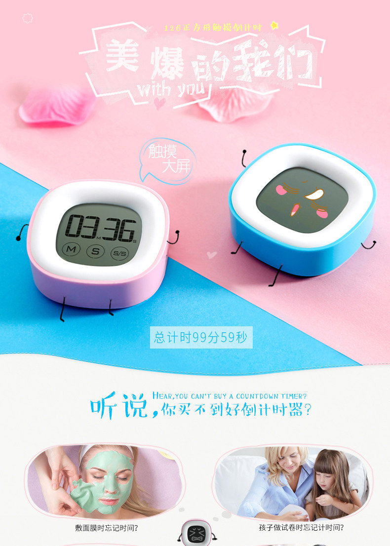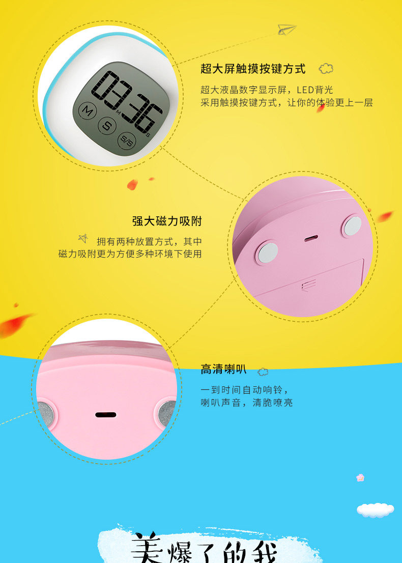 触摸大屏幕声音家用厨房触屏定时提醒器儿童电子秒表学生倒计时器