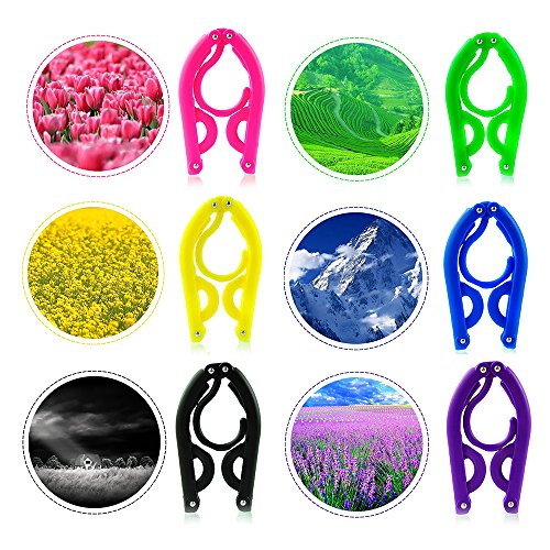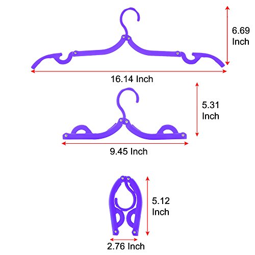 -. Feature : FOLDABLE, COMPACT DESIGN & LIGHTWEIGHT - Foldable travel clothes hangers, idea for travel & home used. For travel, Business, Casual or Backpack travelers love them, easily fit into your suitcase, briefcase, carry-on or backpack. For home used, when not in use, just fold it and keep in storage for saving space. / MULTI-PURPOSE USAGE - For travel, home, laundry home, you can even use for camping not just hanging clothes or hanging clothes to dry, you can also use to hang backpack, bags, food, even lanterns. Use it in your car too, not just for hanging clothes, but handbag or small briefcase. Practically, you can used it everywhere! / FOLD, SEMI UNFOLD & FULLY UNFOLD - FOLD it when not used (2.76" Length x 5.12" Height), SEMI UNFOLD to use as Baby Clothes Hangers (9.45" Length x 5.31" Height), hanging baby clothes, kids clothes or even smaller size clothes. FULLY UNFOLD to use as standard hangers (16.14" LENGTH x 6.69" Height), for hanging adults clothes, shirts, suit coats, jackets, dresses, sweaters, etc. / PACK OF 6 - Package included 6 colors (Black, Blue, Yellow, Green, Purple and Pink). / BUY MORE SAVE MORE - We love our customers and want you to love us too! If you buy 2, you can immediately save 5% at checkout, buy 3 save 7%, buy 4 save 10%, buy 5 for 15% (no coupon necessary). Buy for a friend or loved one and save together! A perfect gift for traveler. Order yours today and send a pack to a traveler friend. They will love you for it.