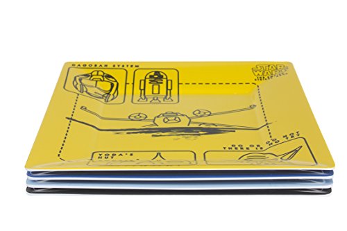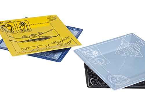 Studio : Underground Toys Publisher : Underground Toys Binding : Kitchen Product Description A long time ago in a galaxy far, far away...we discovered this Star Wars Blueprints Plate Set! With four bold and bright designs (2x Rebel Alliance, 2x Empire) featuring fantastic blueprint graphics of Yoda, Darth Vader and a range of vehicles and droids. These durable and easy clean melamine plates make the perfect addition to any dinner party, on or off world. Each plate measures 8 x 8-inches. This set makes a fantastic gift for your favorite Star Wars fan. Whether for eating off of or serving food or simply displaying on a shelf in your room or kitchen, these plates are out of this world. 0