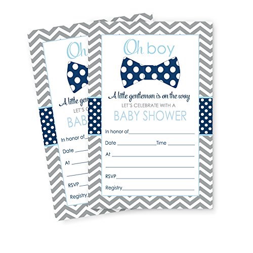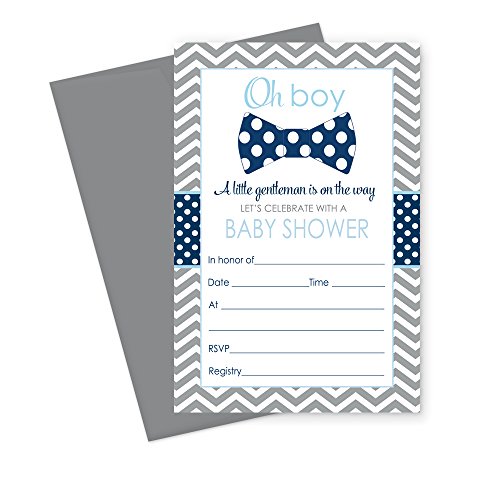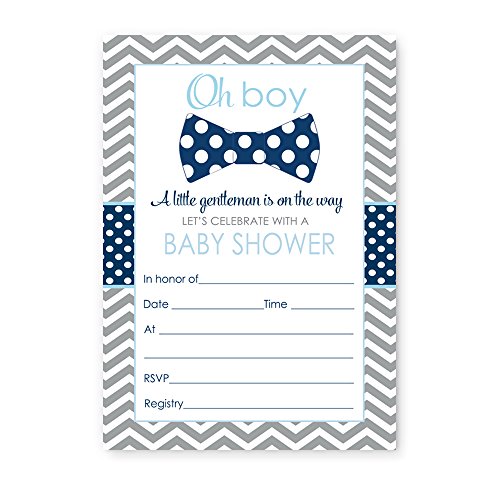 Bow Tie Baby Shower Invitations (Fill In) Set of 15 with Envelopes Navy & Grey