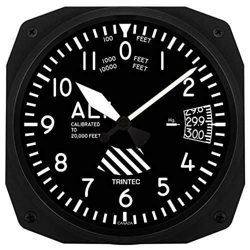 Our 10" Aviator Style Wall Clocks are made to closely portray primary cockpit flight instruments. Each clock features the actual shape of an aircraft instrument and a replicated dial. Measurements are 10" Square x 1 3/4" Depth.
