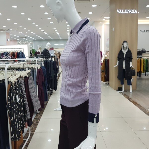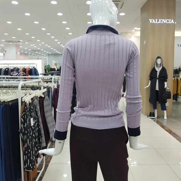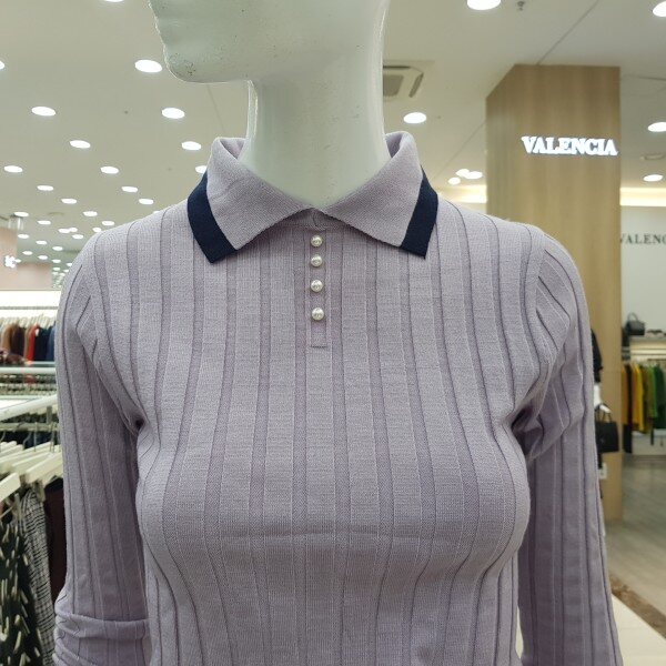 타이트한 신축성좋은 카라니트.배색과진주단추가포인트입니다.
