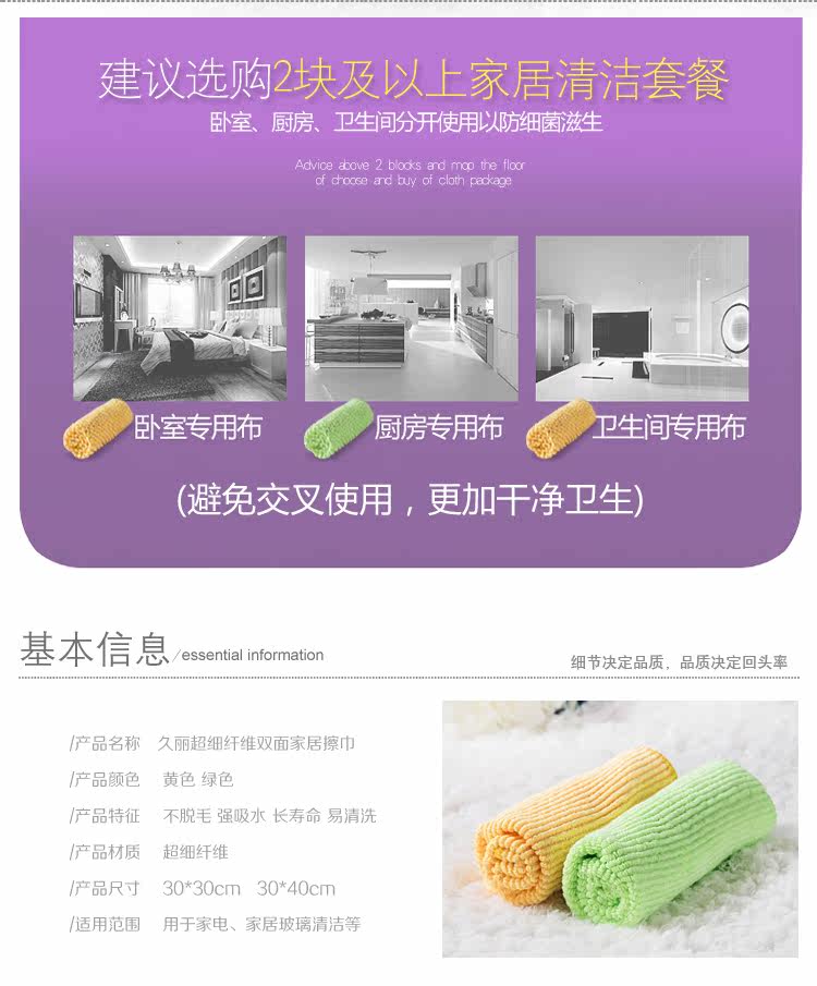 久丽 超细纤维家居清洁擦巾双面双效抹布去污不留水痕不掉毛