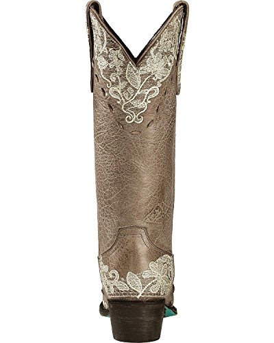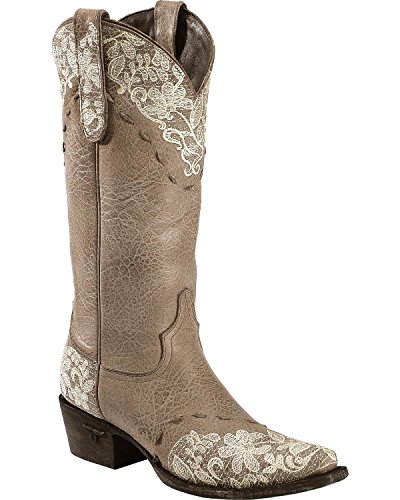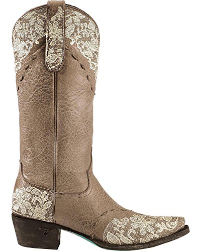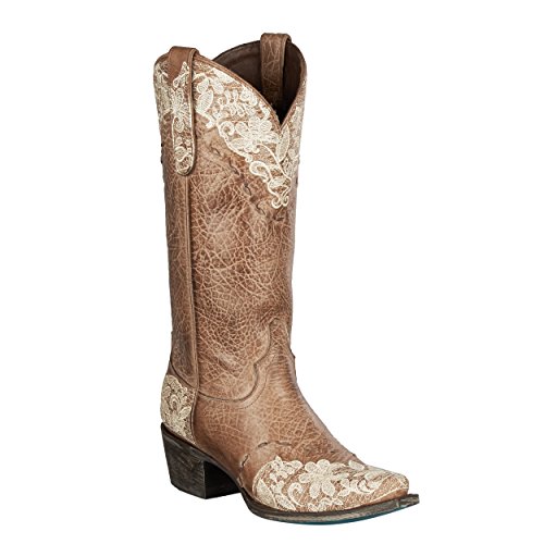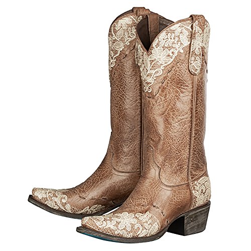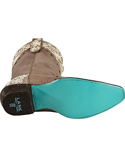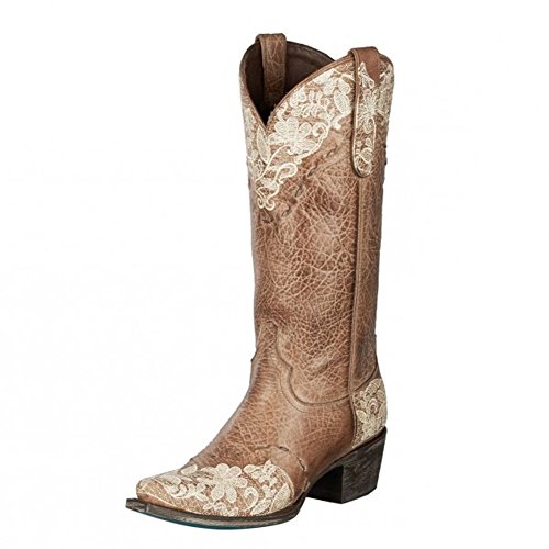 Studio : Lane Boots Publisher : Lane Boots Binding : Apparel Product Description Lane provides premium cowgirl boots made from quality craftsmanship and materials. The Lane Jeni Lace boot is handcrafted, hand lasted, and bench made from supple, distressed leather and detailed with delicate ivory lace embellishment so each boot features a southern femininity in every step. So be sure to kick up your stacked heels and show off those iconic turquoise soles in these uniquely distressed cowgirl boots by Lane. 0