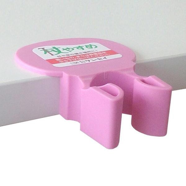 杖やすめがあれば、杖が倒れる心配がありません。受付カウンターなどの天板に粘着シールで貼付けできます。