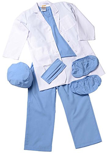 Is there a Doctor in the house? Make sure your child fits the part with this high quality, durable Jr. Physican set by Aeromax. Realistic design and details include: Surgical shirt, pants, mask, matching shoe covers, and lab coat with 3 pockets. Available in multiple sizes for the best fit and available in three colors: Blue, Green, or Pink (all colors available on Amazon). Aeromax quality products make great gifts for girls and boys. This item has been tested to meet applicable USA safety standards for children's products.Feature