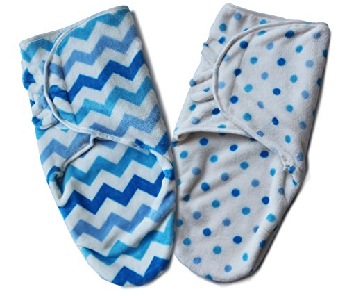 Bisdis Swaddle Blanket - Super Soft Easy Adjustable Infant Wrap With Velcro - Set of 2 Chevron and Polka Dot Pattern for Baby Boy - Small