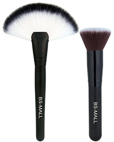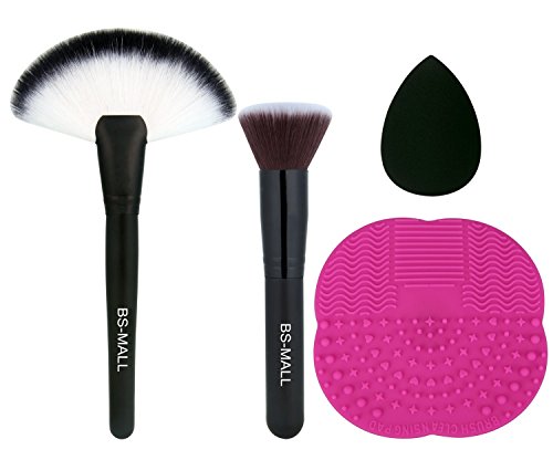 BS-MALL 4 PCS Flat Fan Makeup brushes Plus Makeup Brushes cleaner and 1 Pcs Sponger Blender