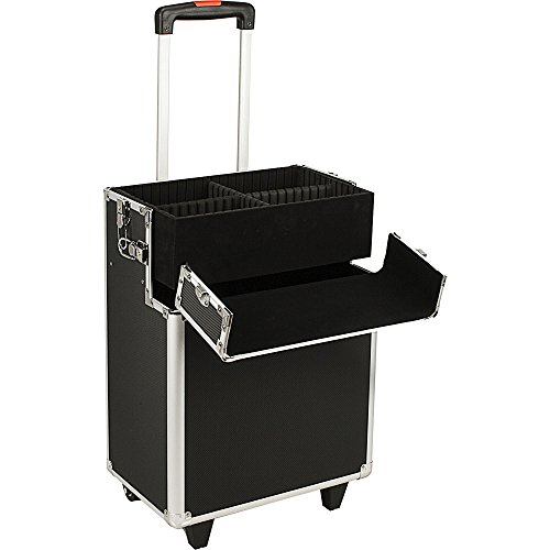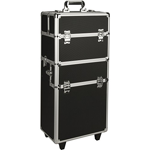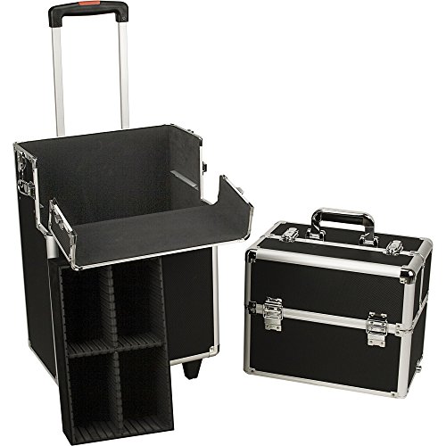 JustCase Professional Rolling Aluminum Cosmetic Makeup Case and Extendable Trays, Black Dot