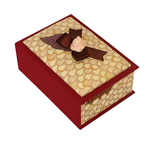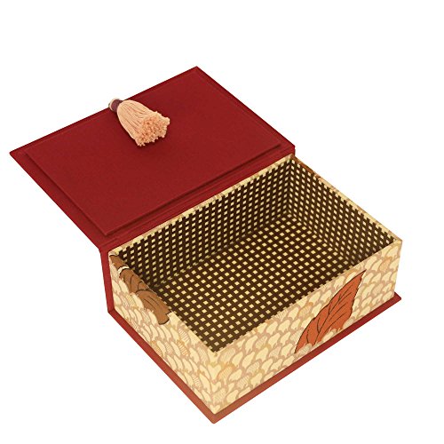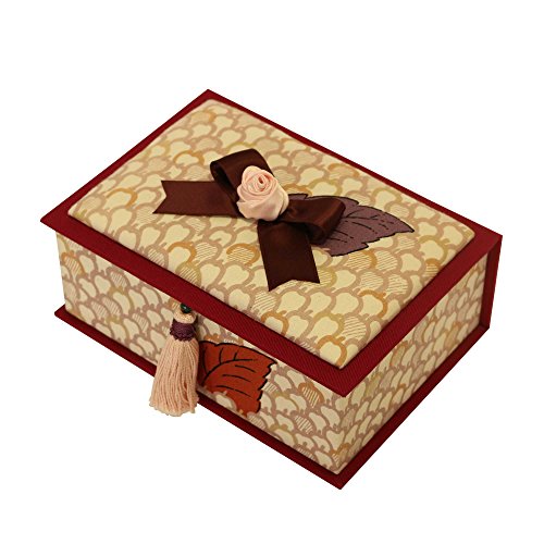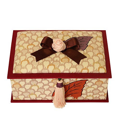 Hana Butai Jewelry Trinket Box, Handmade Decorative Box Decorated with Ribbon and Tassel, Fabric Covered Box with Leaf Accent, Cartonnage Art Box Pink Rose and Autumn Leaves, Japan Import