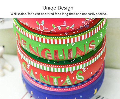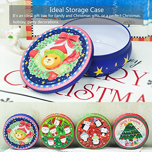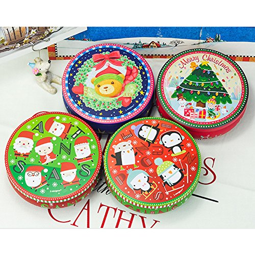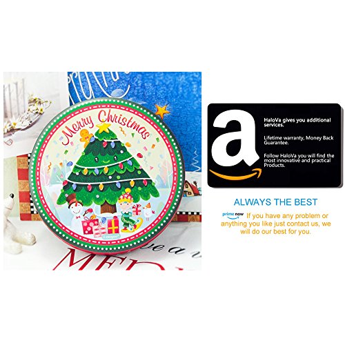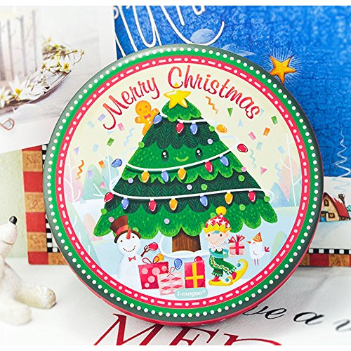 HaloVa Tin Box, Christmas Style Big Circular Cookie Candy Biscuit Tin Box Metal Tin Jar Food Storage Containers, Christmas Tree