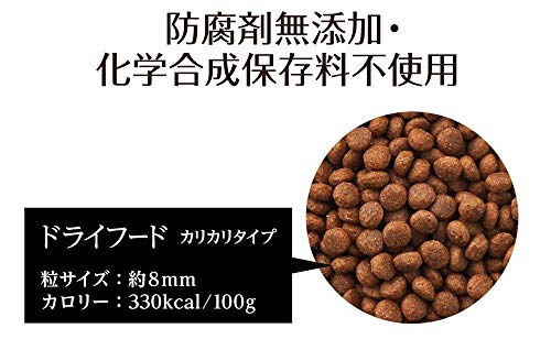 原材料:肉類〈ビーフ(骨・皮・内臓を含まない)、豚レバー、鶏レバー、チキンエキス〉、とうもろこし、小麦粉、コーングルテンフィード、動物性油脂、植物性油脂、ふすま、脱脂米糠、亜麻仁油、グルコサミン、サメ軟骨抽出物(コンドロイチンを含む)、乳酸菌、ミネラル類(Na、Cl、P、K、Zn、Fe、Cu、Co、Mn、I)、増粘安定剤(グリセリン)、ビタミン類(A、B1、B2、B6、B12、C、D3、E、K3、コリン、ニコチン酸、パントテン酸、葉酸、ビオチン)、酸化防止剤(ミックストコフェロール、ハーブ抽出物)たん白質・・・29.0%以上,脂質・・・8.5%以上,粗繊維・・・4.0%以下,灰分・・・8.0%以下,水分・・・12.0%以下