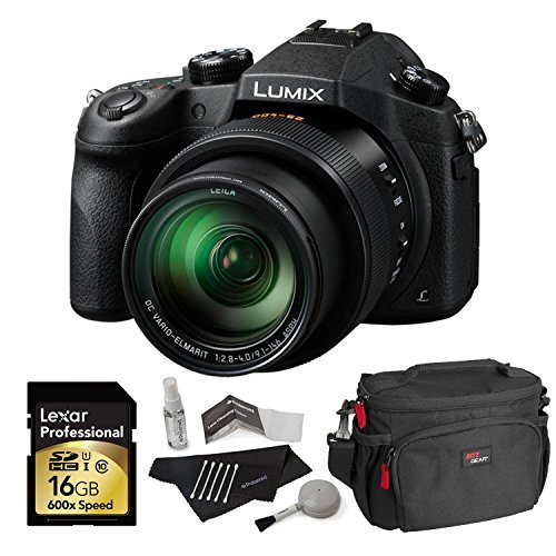 Panasonic Lumix DMC-FZ1000 4K QFHD/HD 16X Long Zoom Digital Camera (Black) + Panasonic 16 GB UH3 SD Card + Camera Bag + Camera Cleaning Kit