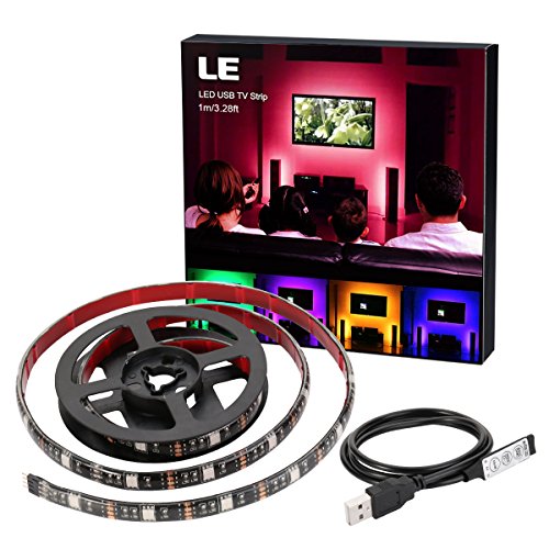 LE TV LED Light Strip, 30 LEDs USB TV Backlight Strip, 100cm/3.28ft 5050 Waterproof RGB Changing Color Strip, Accent Night Monitor Lighting for Flat Screen HDTV TV Desktop PC ( with Mini Controller)