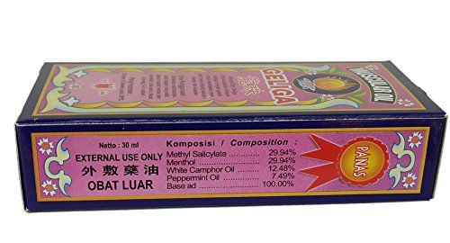 -. Feature : Product of Indonesia. / Relieve muscle pain, pain caused by blows / bruises and sprains. / Hot muscular oil / Geliga from Eagle brand (Cap Lang) / 30ml (1 FlOz) per order