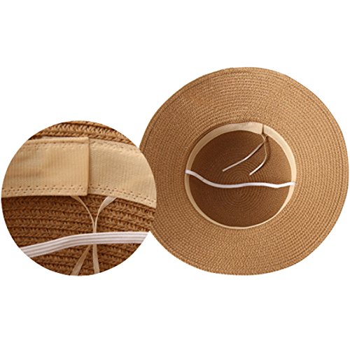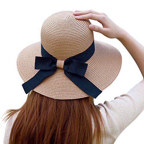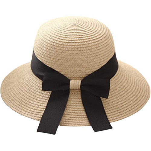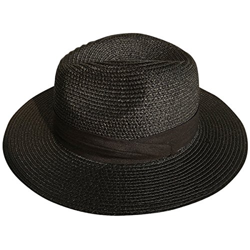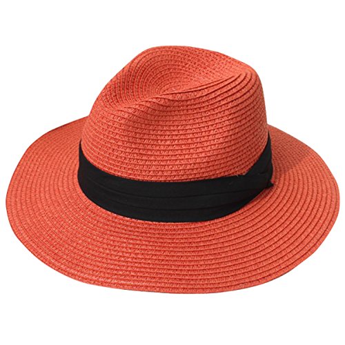 | Lanzom Women Wide Brim Straw Panama Roll up Hat Fedora Beach Sun Hat UPF50 |