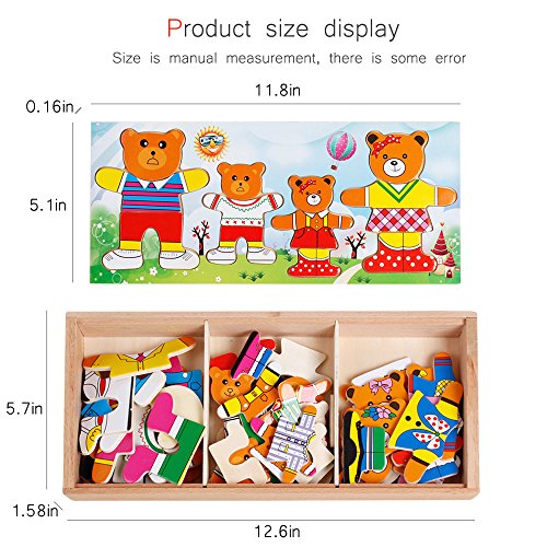-. Binding : Toy -. Brand : baoduole toys -. EAN : 0615855329727 -. Feature : Material: Wood.Pro-environment and safe. / Characteristic: Children can make the bear play a different role by Changing the bear's outfit, shoes, and expression for hundreds of combinations! / Wooden box which is divided into a lot of small grid to facilitate the classification of children,which is benefit to cultive a good daily habit of orderly classification. / Product Size:12.99*5.12*1.77inch / Age: 3-6 years old.Tips:There are some small parts which may cause choking hazard,so children should be supervised while playing with it. -. IsAdultProduct : 0 -. Label : baoduole toys -. Manufacturer : baoduole toys -. ProductGroup : Toy -. ProductTypeName : TOYS_AND_GAMES -. Publisher : baoduole toys -. Studio : baoduole toys -. Title : Bear Change Clothes puzzle Wooden Blocks Jigsaw Puzzle Dress Up Clothes Three-dimensional Baby Enlighten Toy for kids Preschool Educational -. UPC : 615855329727