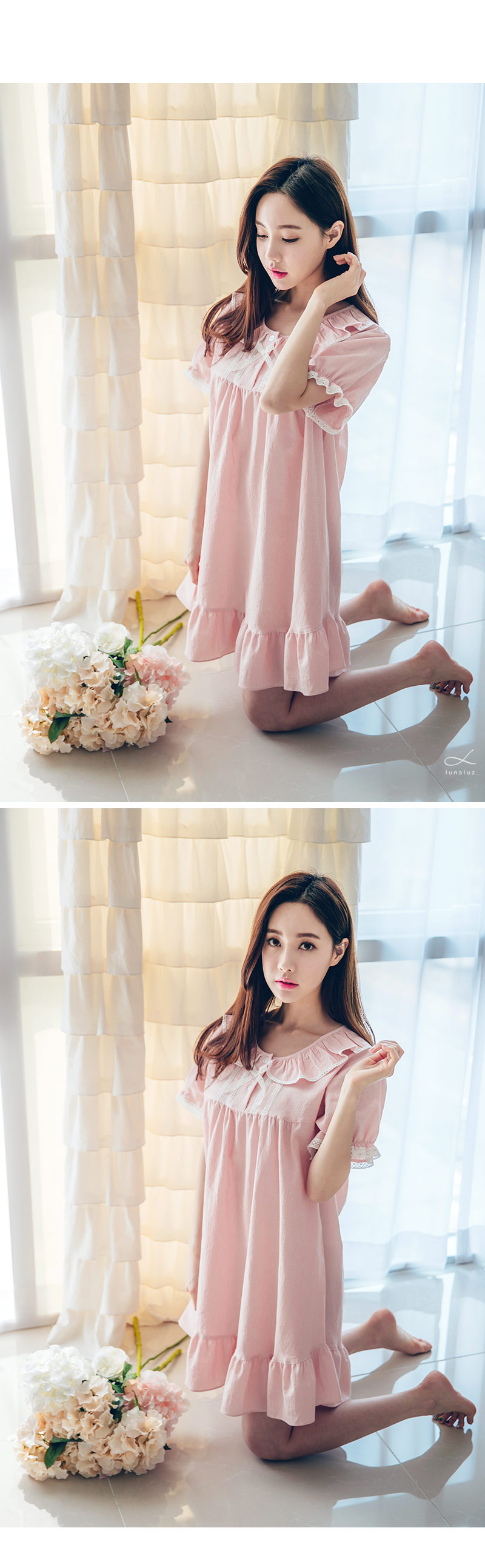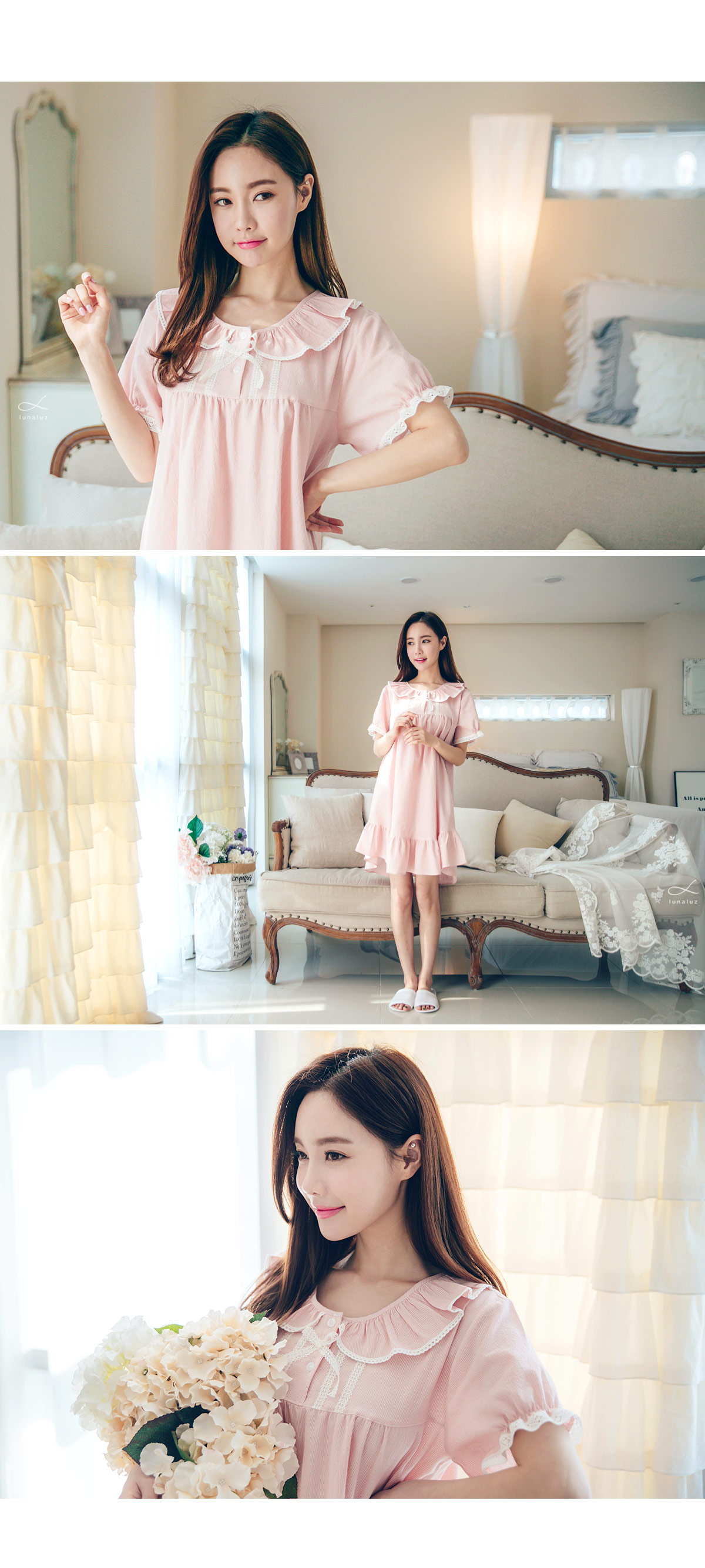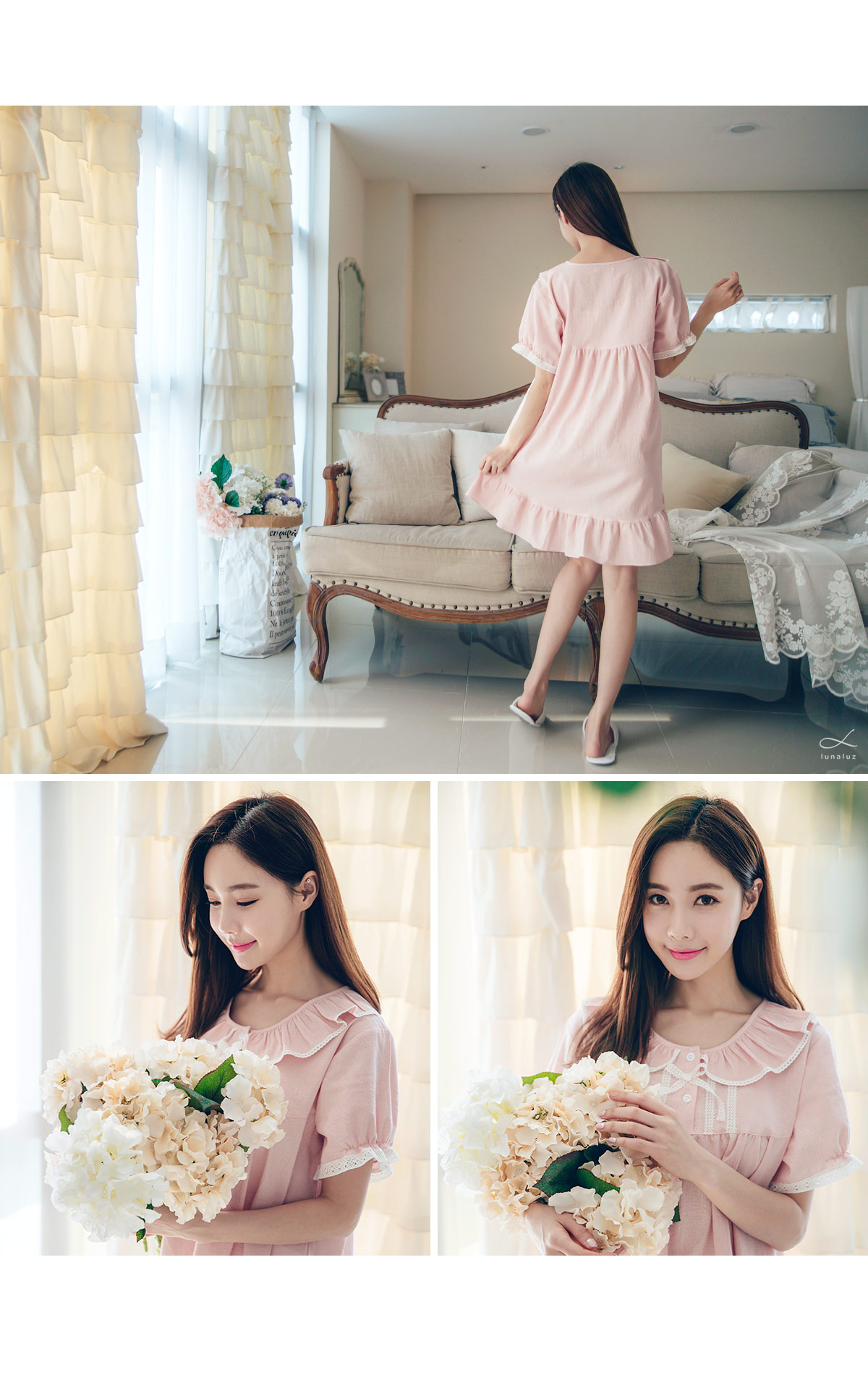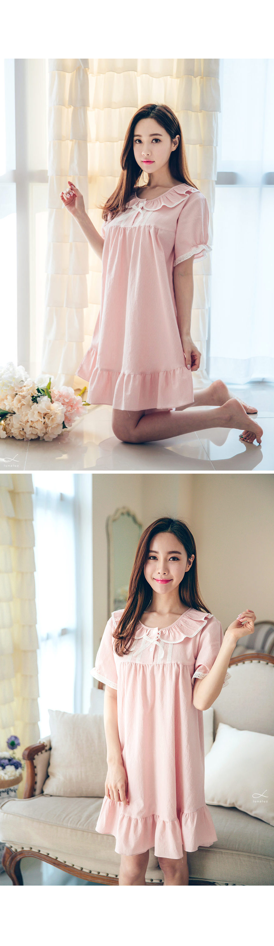 산뜻하면서 러블리한 디자인과 원단이 어우러진 ‘레이첼’ 미니 원피스 잠옷이에요: ) 탄탄한 소재와 심플하면서 부드러운 느낌의 핑크톤의 스트라이프로 cozy한 홈웨어룩을 연출하기 좋습니다. 스트라이프로 포인트를 주어 슬림 해 보이는 효과를 주며 실을 직접 염색하여 짠 선염 면 조직으로 세탁하여도 흐트러짐 없는 원단의 고급스러움을 느끼실 수 있습니다. 사이즈는 free사이즈로 평소 44반~66size까지 입으실 수 있는 패턴입니다. 여리하면서 소녀스러운 느낌을 내어주는 적당한 네크 라인과 단정하면서 러블리한 스타일의 원피스 잠옷이에요. 네크 라인에 살짝 넓은 프릴 장식과 끝 부분에 레이스를 달아주어 얼굴 빛이 더 화사해 보여요. 클로징 버튼 부분에도 세로 레이스 장식을 여러 줄기 달아주어 러블리함을 배로 살려주었어요. 가운데 레이스 리본 장식으로 마무리 하였습니다. 소매는 살짝 볼륨감 있게 떨어지도록 제작하여 전체적인 분위기에 걸맞는 느낌을 내어줍니다. 소매 양 사이드 부분에 밴딩을 넣어 소매가 예쁘게 잡아지도록 세심하게 디자인 하였어요. 살짝 A라인으로 퍼지는 미니 기장의 원피스 스타일로 정말 귀여워요~ 소재가 탄탄하고 핏을 잘 잡아주어 실루엣이 사랑스러워요.^^ 100%국내 제작으로 소재가 좋고, 봉제선이 깔끔하며 디자인에 퀄리티를 높여주었습니다.