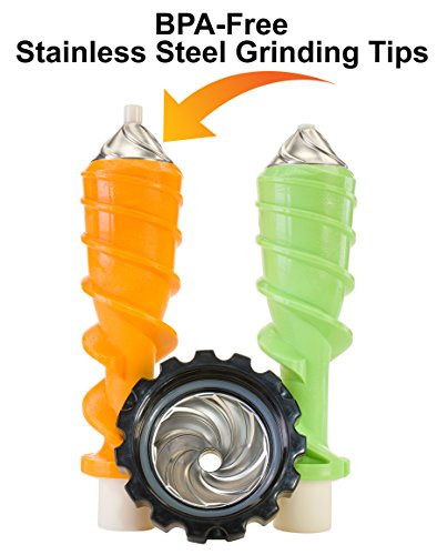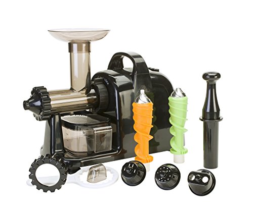 Make pasta, nut butters, healthy baby food, frozen desserts and soy milk! Includes two specially designed augers, one for wheatgrass/leafy greens and one for fruits and vegetables.