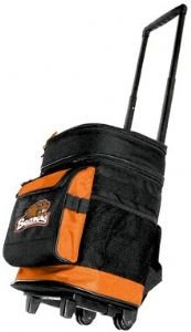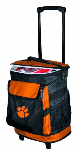 Made of 1680 denier polyester and foam insulation interior. Heat sealed leak proof interior lining. Features pull out handle with smooth rolling in-line wheels. Zipper storage compartment on front features a 5-Inch embroidered logo. Also has two convenient elastic mesh pockets on the sides. Holds 24 12-Ounce cans plus ice. Also features backpack straps for carrying on soft surfaces.Feature