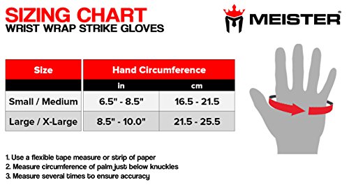 With versatile wrist support and striking protection, Meister Strike Gloves are a must-have inner glove for your training sessions. Follow the sizing chart to measure your hand and select the correct size - if you're between sizes go with the larger size. 0