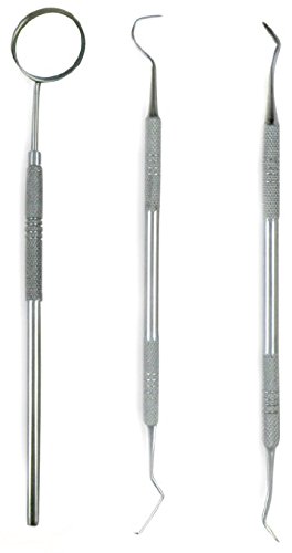 -. Feature : 3 pieces dental hygiene kit / This set includes: 1 Dental Pick, 1 Scaling instrument, 1 Dental Mouth Mirror / Fully guaranteed against defect in material and workmanship / Premium Grade Stainless Steel, polished to High Standard / These Stainless Steel Handle dental tools helps remove tartar and plaque from teeth. Knurled handles provides excellent hand control