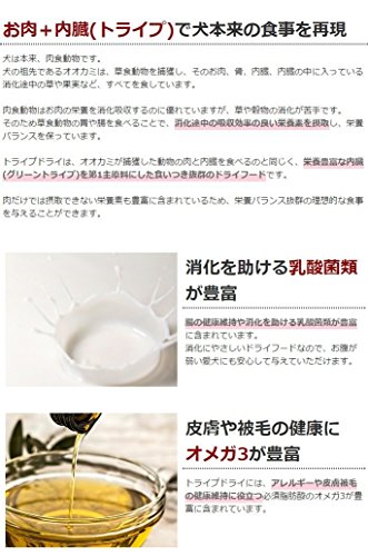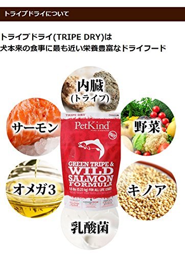 原材料:●原材料ラムトライプ,サーモン,エンドウ,ピースターチ(エンドウ澱粉),乾燥ターキー,ピープロテイン(エンドウタンパク質),キャノーラオイル(ローズマリー抽出物で保存),フラックスシード,ナチュラルフレーバー(鶏レバーオイル),キノア,カボチャ,ホウレンソウ,ニンジン,ブロッコリー,クランベリー,リンゴ,ブルーベリー,バナナ,炭酸カルシウム,塩化ナトリウム,第二リン酸カルシウム,塩化カリウム,サーモンオイル(ミックストコフェロールで保存),チコリ根,塩化コリン,ビタミンA,ビタミンD3サプリメント,ビタミンE,ナイアシン,パントテン酸カルシウム,リボフラビン,硝酸チアミン、,塩化ピリドキシン,葉酸,ビタミンB12サプリメント,硫酸亜鉛,硫酸鉄 ,亜鉛タンパク化合物,鉄タンパク化合物,硫酸銅,酸化マンガン,銅タンパク化合物,マンガンタンパク化合物,ヨウ素酸カルシウム,亜セレン酸ナトリウム,タウリン,乾燥ラクトバチルス・アシドフィラス発酵産物,乾燥ラクトバチルス・カゼイ発酵産物,乾燥ビフィドバクテリウム・サーモフィラム発酵産物,乾燥ストレプトコッカス・フェシウム発酵産物,ユッカ根エキス,ローズマリー,唐辛子,ペパーミント,タイム,緑茶抽出物●保証分析値粗タンパク質30.0%以上、粗脂質16.0%以上、粗繊維質4.0%以下、水分10.0%以下、粗灰分7.0%以下、リン0.8%以上、マグネシウム0.10%以下、タウリン2790mg/kg以上、オメガ6 2.3% 以上、オメガ3 1.5% 以上