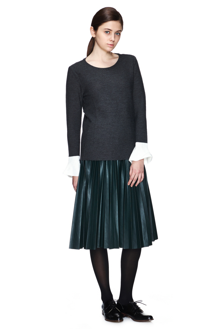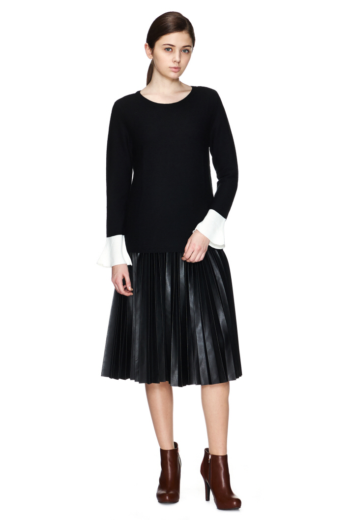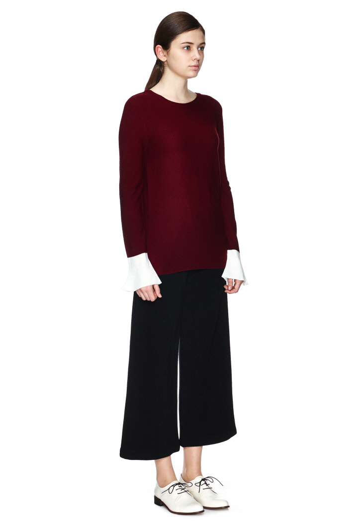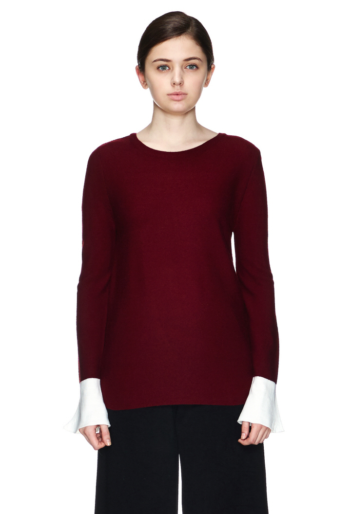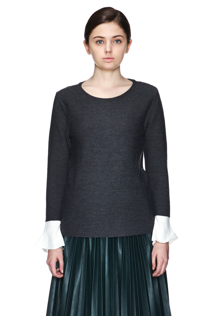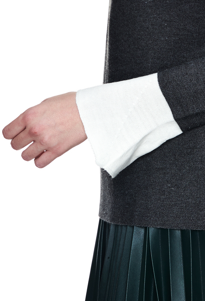 레귤러 핏에 배색 롱 커프스 소매 디테일이 포인트입니다