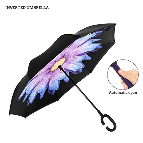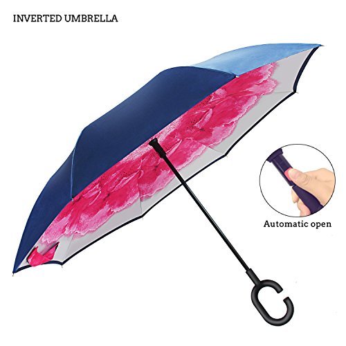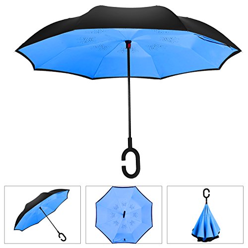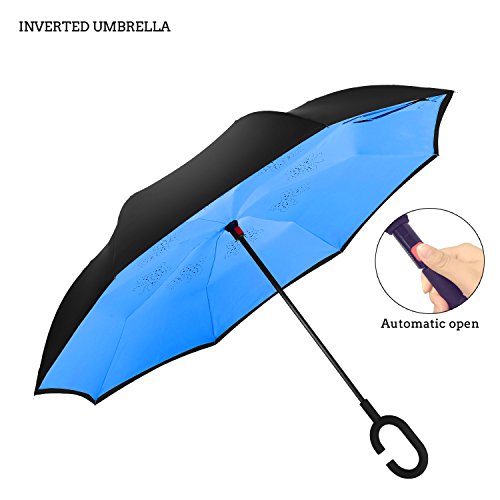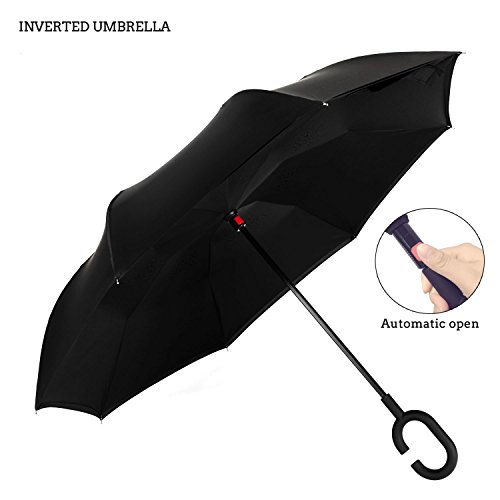 INVERTED UMBRELLA: you can open this inverted umbrella as you open the door and not get wet, And when you close the reverse umbrella, getting back in the car, the water stays inside of the umbrella and doesn't get the car floor wet